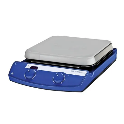 C-MAG magnetic stirrer hot plate features a chemical resistant, glass ceramic top. Speed range from 100 to 1500 rpm, temperature range from 50 to 500 degrees centigrade. Safety circuit shuts off heater above 550 degrees C. Precise temperature control when used with ETS-D5 (Ace code 13602-07) contact thermometer. 115v 50/60Hz, CE & cULus rated.