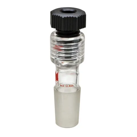 Adapter with #7 Ace-Thred and inner joint. Used for probes, thermometers, electrodes, etc. Nylon bushing comes complete with O-Ring. Suitable for vacuum work.