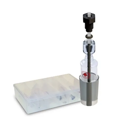 Assortment of #11 and #15 Ace-Thred™ probe adapters to standard taper joints. #11 adapters mate 9-10.5 mm diameter probes and tubes while the #15 adapters do the same for 12.5-14 mm diameter probes and tubes. Adapters are suitable for most vacuum applications. Each nylon bushing is paired with a FETFE® O-Ring (FKM with Ptfe internal lubricant) to form a compression seal. Included in the assortment are: (1) 5030-22 #11 to 24/40, (1) 5030-24 #11 to 29/42, (1) 5030-19 #11 to 45/50, (1) 5030-40 #15 to 24/40, (1) 5030-42 #15 to 29/42 and (1) 5030-45 #15 to 45/50 adapters.