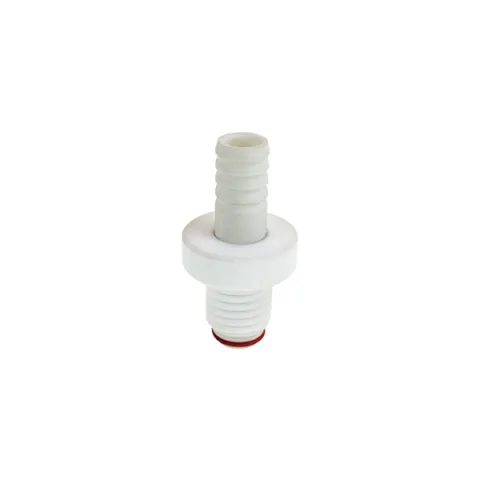 Ace-Safe™ threaded tubing connectors for Glass Ace's Ace-Threds™. A safety and flexibility improvement over glass hose connections. These connections don't break like glass as they are manufactured from glass filled PTFE for mechanical strength and chemical inertness. Stronger than PFA and polypropylene connectors. Interchangeable connectors make an Ace-Thred™ piece of glassware instantly connectable to many tubing ID's.