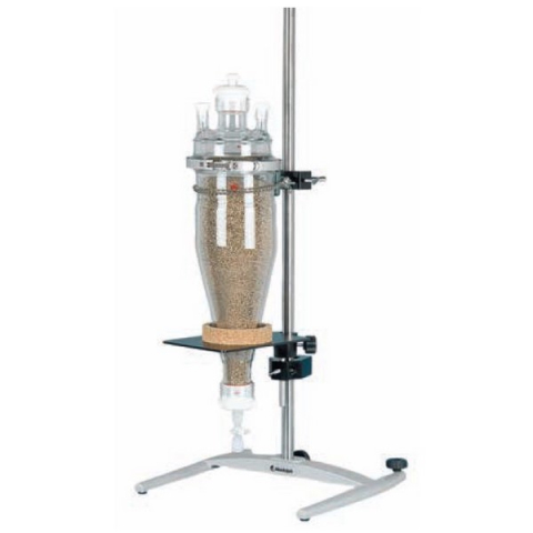 Support stand assembly for bench scale size Chromatography columns. "H" shaped base stand and 122cm high stainless steel rod gives great stability for the larger bench scale columns. Stand comes complete with base, rod, support plate with hole, clamp holder, chain clamp and cork ring.