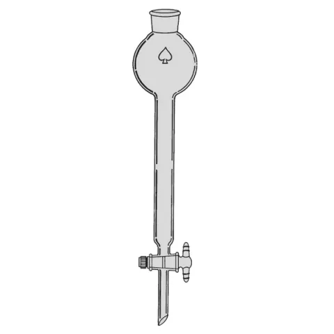 Chromatography column with integral reservoir at top, and 2 mm bore 1:5 taper PTFE stopcock plug at bottom. Opening at top for #3 stopper. Comes without Porosity B (70-100 micron) fritted disc sealed in.