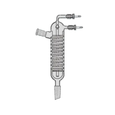 With molded spiral condensing surface and joint at bottom and top. Jacket length 250 mm. Comes with #7 Ace-Thred and "Ace- Safe" hose connections on inlet and outlet with barb for 1/4-inch I.D. tubing. For high-temperature applications, use 5858 high-temperature hose connections.