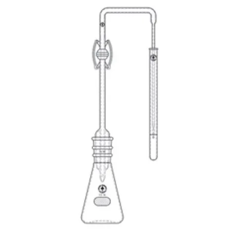Arsenic limit test apparatus as described in the European Pharmacopeia 9.4, chapter 2.4.2. Complete apparatus consists of 125mL Erlenmeyer flask, 24/40 chimney tube with flat ground o-ring joint, bent tube with flat ground o-ring joint and 1mm drip tip, test tube and springs for securing the chimney tube to the bent tube.