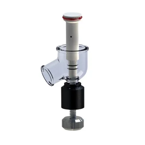Flush seal bottom drain valve assembly, complete with glass valve, unpinned PTFE valve stem and Kalrez® o-rings