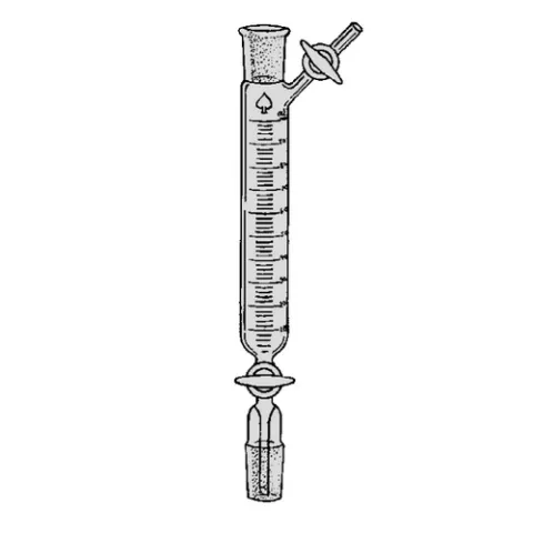 With inner joint at bottom and outer joint at top. Graduated to 125 ml in 1 ml subdivisions. Double scale with glass stopcock.