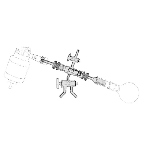Ingenious rotary evaporator constructed of glass or stainless steel, PTFE and glass-filled PTFE that operates without the devices normally associated with this type of equipment. Use with any lab stirring motor. Stainless Steel 10 mm O.D. tube, with 24/40 at one end for flask and holes drilled near center for vacuum, attaches to laboratory stirring motor. Tube turns inside PTFE bearing held in #15 Ace-Threds by glass-filled PTFE bushing, compression saddle with O-Ring and lock nut. 2 mm straight bore stopcock attaches to drying tube and/ or Mcleod gauge. One arm of 4 mm bore double oblique stopcock attaches to dry ice trap and vacuum line; other arm is for easy vacuum release and can be connected to a trap.