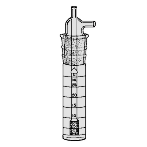 Identical to 7531-10 with the exception that the nozzle is replaced by a sintered glass filter, porosity A (145-175 microns). Used in determination of Acrolein: 4-Hexylresorcinol Method #1. Bottle has encircling graduations from 0 to 25 mL in 5 mL divisions.