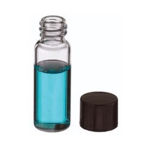 USP Type I, class A, clear, borosilicate glass, sample vials complete with solid, black, phenolic, caps. Caps have PTFE faced 14B rubber liners for purity and chemical resistance.