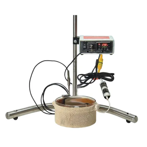 Oil baths heated by Instatherm®, an integral noble metal alloy fused permanently to the glass & covered with a tough silicone rubber treated glass cloth insulation which serves as a thermal barrier as well as protection against physical shock. Rapid heat response - low thermal lag. Control cord and thermocouple/thermometer holding clip are included.