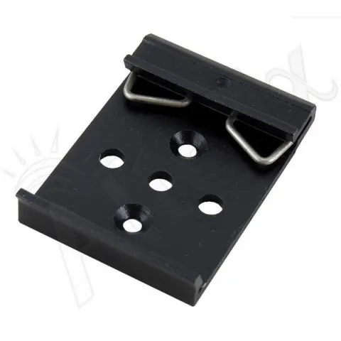 The Altelix DCL35-A035 35mm Wide Aluminum DIN Rail Mounting Clip is designed for mounting non-DIN rail devices to 35mm Top Hat DIN rail. This DIN Rail Clip is made from extruded aluminum with a black anodized finish. It features a steel retention spring and several mounting holes for attaching to equipment.