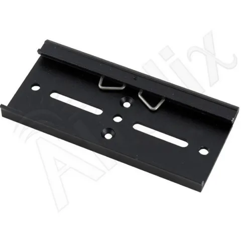 The Altelix DCL35-A100 100mm Wide Aluminum DIN Rail Mounting Clip is designed for mounting non-DIN rail devices to 35mm Top Hat DIN rail. This DIN Rail Clip is made from extruded aluminum with a black anodized finish. It features a steel retention spring and several mounting holes and slots for attaching to equipment.