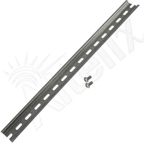The Altelix DRS-NS16 is a 35mm Top Hat DIN Rail Kit for use with the Altelix NS161608-DIN, NS201608-DIN and NS241610-DIN NEMA enclosures. The kit consists of (1) a 14" long 20 gauge steel 35mm top hat DIN rail and (2) #10-24 screws. This DIN rail kit easily mounts to DIN rail mounting brackets inside the enclosures.