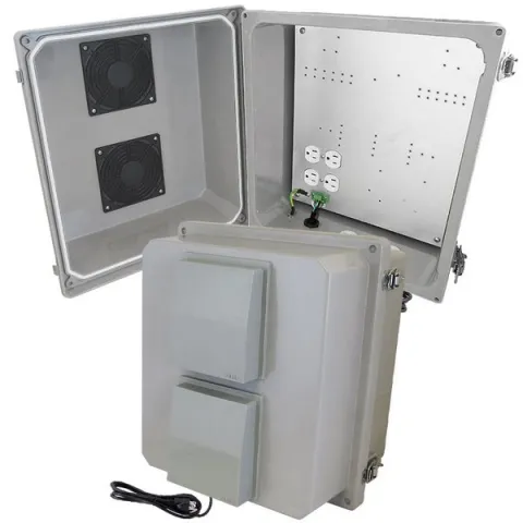 Altelix NF141210VA1C NF Series 14x12x10 Fiberglass Weatherproof Vented NEMA Enclosure with 120 VAC Outlets & Power Cord