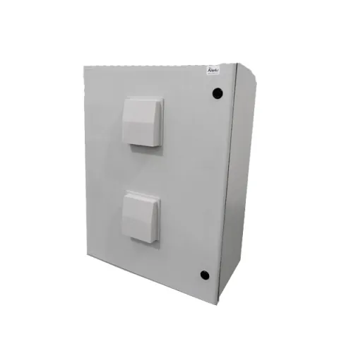 This configuration consists of the fiberglass NEMA enclosure with hinged lid and a equipment mounting plate with two pre-wired duplex 120VAC power outlets (4 outlets total). The outlet box is easily removable to facilitate wiring to an external power source.