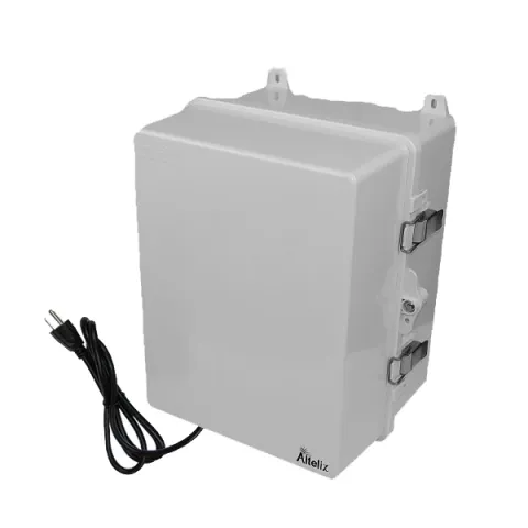 The Altelix NP141109A1C NEMA 4X enclosure is simple to install because no wiring is required. Simply mount the enclosure and plug the pre-wired 5 foot power cord into a nearby outlet. Two internal pre-wired 120VAC power outlets are provided to power your equipment.