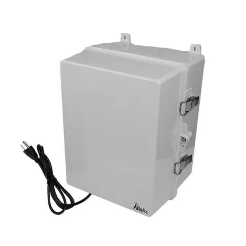 The Altelix NP141109HA1C-DIN NEMA 4X heated enclosure is simple to install because no wiring is required. Simply mount the enclosure and plug the pre-wired 5 foot power cord into a nearby outlet. It is ideal for protecting DIN rail mounted devices from harsh environments and tampering.