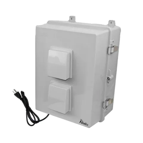 The Altelix NP171409VFA1C-DIN NEMA enclosure is simple to install because no wiring is required. Simply mount the enclosure and plug the pre-wired 5 foot power cord into a nearby outlet. Two internal pre-wired 120VAC power outlets are provided to power your equipment. It is ideal for protecting DIN rail mounted devices from harsh environments and tampering.