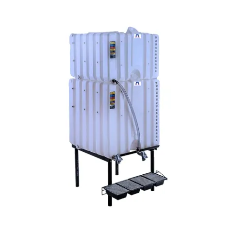 - one (1) 120-gallon stackable poly tank and one (1) 180-gallon stackable poly tank