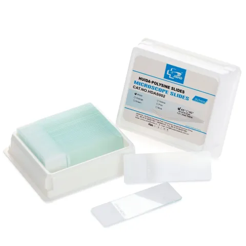 - 50 blank 3" x 1" Polysine-coated microscope slides that attract samples to the surface for biological applications.