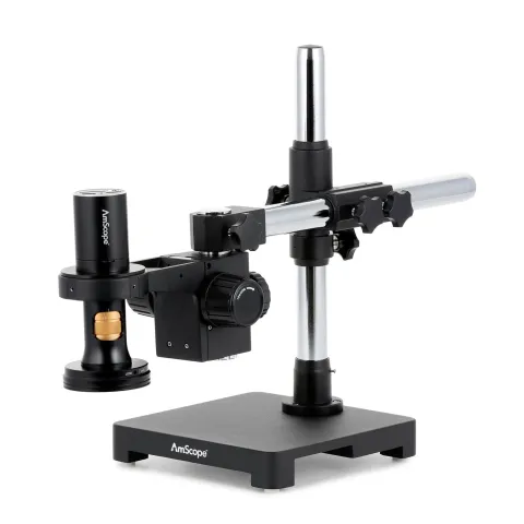 AmScope DM756 Series 1080p HDMI All-in-One Digital Microscope 0.35X-5.6X Magnification with Zoom Optics on Single-Arm Boom-Stand