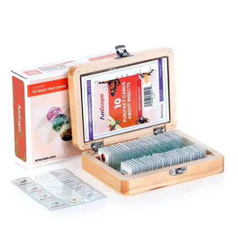 AmScope PS-INST 30pc Glass Prepared Insect Slide Collection in Wooden Case