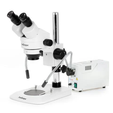 AmScope SM-1BNX-FOD-M Zoom Binocular Stereo Microscope 3.5X-45X Magnification w/ 150W Halogen Dual Gooseneck Lights and 1.3MP USB 2.0 C-mount Camera on Compact Pillar Stand