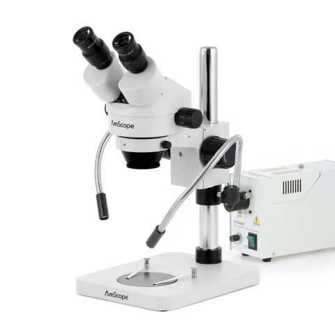 AmScope SM-1BS-FOD-10M SM-1 Binocular Stereo Microscope 7X-45X w/ 150W Halogen Dual Gooseneck Lights & 10MP USB 2.0 Camera on Compact Pillar Stand