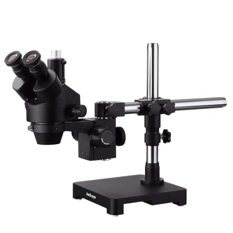 AmScope SM-3T Series Black Trinocular Zoom Stereo Microscope 7X-45X on Single Arm Boom Stand