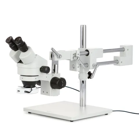 - A highly-versatile stereo microscope on a heavy-duty, multi-pivot boom-stand which allows the microscope to easily swing into place when needed, and away when not.