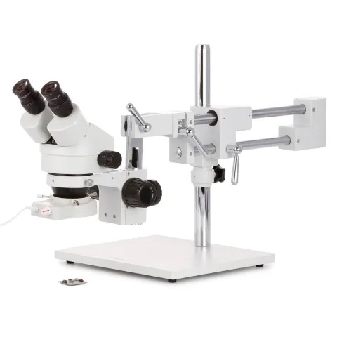 - A highly-versatile stereo microscope on a heavy-duty, multi-pivot boom-stand which allows the microscope to easily swing into place when needed, and away when not.