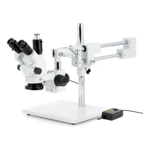 - A highly-versatile stereo microscope on a heavy-duty, multi-pivot boom-stand which allows the microscope to easily swing into place when needed, and away when not.