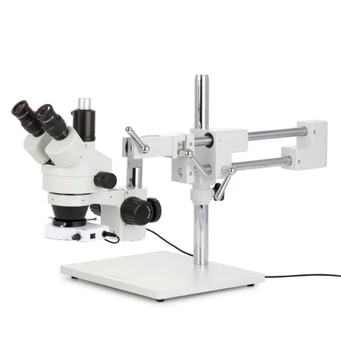 - A highly-versatile stereo microscope on a heavy-duty, multi-pivot boom-stand which allows the microscope to easily swing into place when needed, and away when not.