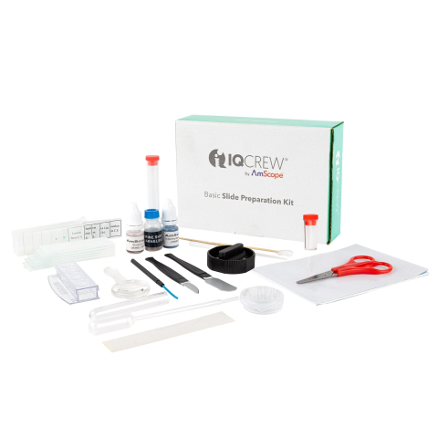 This 35-piece essential toolkit for microscopes includes an assortment of tools needed to collect specimens and prepare slides. Safe for children 8 years and up, the included tools provide real functionality for serious beginners and seasoned students alike. To get started this kit includes 5 prepared plant and animal specimen slides which are not only fun to view but a great way to learn how to use the different features of a microscope.