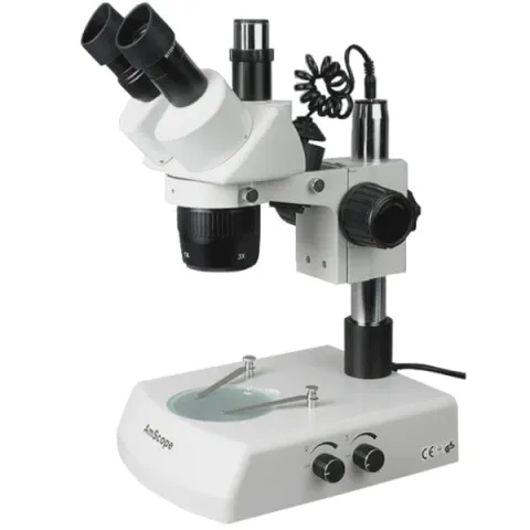 AmScope SW-2 Series Super Widefield Trinocular Stereo Microscope 20X-40X-80X Magnification on Track Stand with Top & Bottom Light