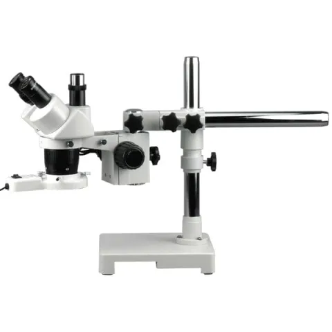 AmScope SW-3 Series Trinocular Stereo Microscope 10X & 30X Magnification on Single-Arm Boom Stand with Fluorescent Light