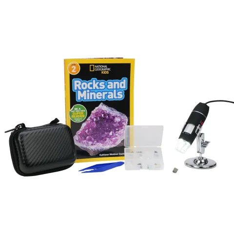 AmScope UWT500-CB-12A-NGRK-TW IQCrew Kid's 50X-500X Handheld Multi-USB Digital Microscope for PC and Android w/ Mini Rock and Mineral Look