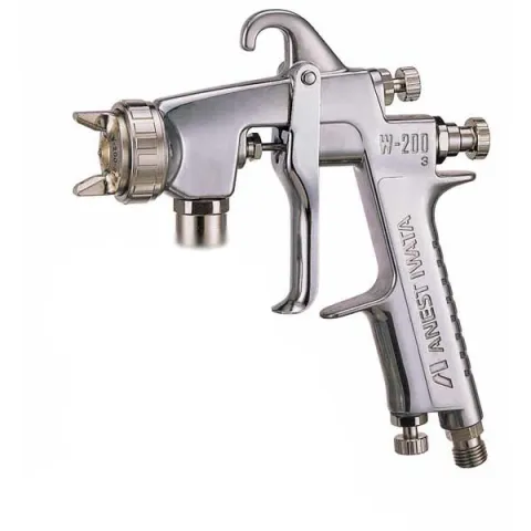W200-ZP manual pressure feed air-spray gun with fluid nozzle and fluid needle made of tungsten carbide ideal for spraying ceramic enamels and similarly abrasive materials. Air Nipple: G1/4", Fluid Nipple: G3/8"