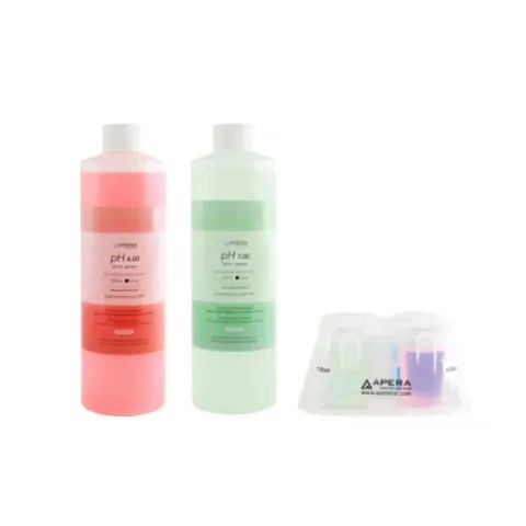 - The Apera Instruments AI1116 pH Calibration Buffer Solution Kit includes three 16oz bottles of pH buffer solutions (pH 4.00& pH 7.00), plus one piece of Apera's Calpod Solution Organizer, which helps streamline the calibration process. The color-coded buffer solutions are standardized against NIST-certified pH references within 0.01 pH at 25°C (77°F). It's ideal for the calibration of all kinds of pH meters. Since pH level is affected by temperature, a temperature/pH reference chart is provided on the bottle label for reference.