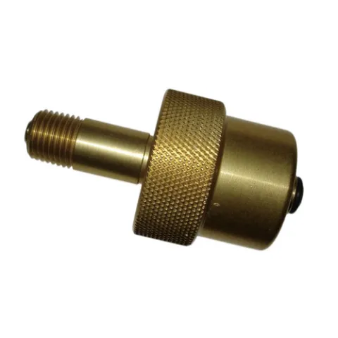 The model 835 fill adapter is a straight adapter without the relief feature. It can be used to fill either the 4500 or 2215 PSI cylinders thus is normally used only on the lower pressure fill line. In facilities where both high and lower pressure fill lines are provided the 835 adapters can provide a matched set. The 835 is gold anodized and slightly shorter. Both adapters use a unique O ring sealed tip. Light finger tightening assures a good seal.