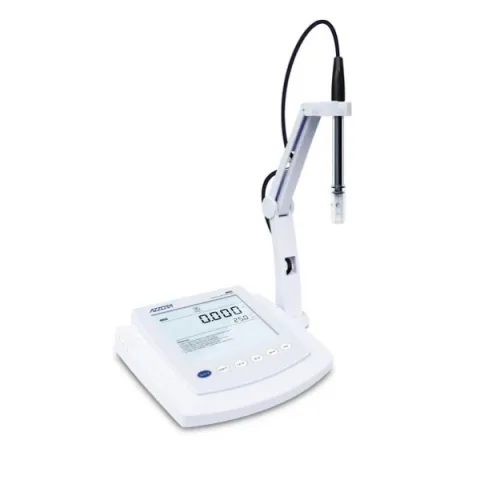 Precision benchtop conductivity meter with TDS, salinity and resistivity measurement modes, 1 to 5 points calibration, setup menu contains 11 options, accuracy: 0.5% F.S.