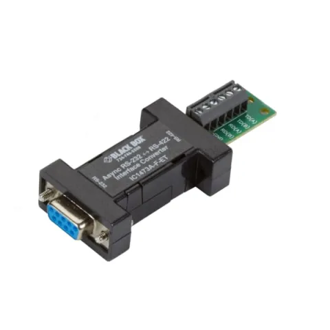 Convert async RS232 to RS422 at speeds up to 115.2 kbps with distances up to 4000 ft over CATx cables.