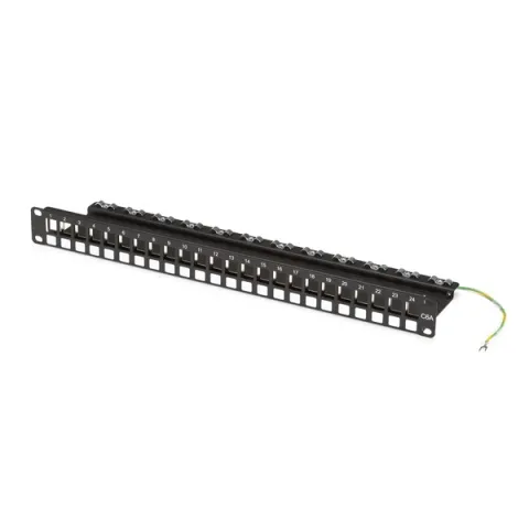 Features built-in rear cable management bar and a grounding wire. Large port numbers make ID easy. Shielded jacks snap in from the rear. Works with CAT6a Shielded Jacks (FMT700).