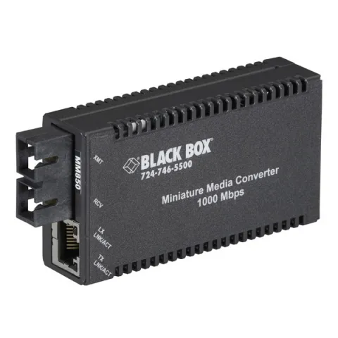 BLACK BOX Miniature Media Converters make it easy to bring fiber to the desktop. Just connect a Miniature Media Converter to your PC's copper port with a CAT5 cable, then connect a fiber cable to the converter's other side. That's all there is to it! Best of all, you can tuck these tiny converters unobtrusively behind your PC. Choose from multimode and single-mode duplex fiber versions. For extra versatility, you can power the Miniature Media Converter through the external AC power supply included with each converter or through the optional rackmount PowerTray (sold separately).