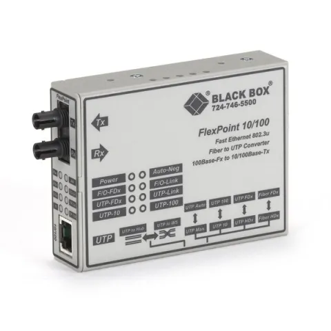 FlexPoint™ Converters from Black Box are versatile and cost-effective standalone converters that you can upgrade to a chassis-based system. They provide the ultimate in flexibility and reliability for your expanding multimedia LAN.