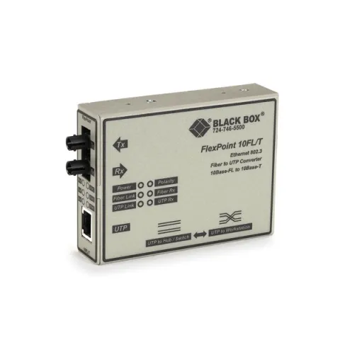 Black Box LMC212A-SM-R3 FlexPoint Ethernet (10-Mbps) Media Converter - 10-Mbps Copper to 10-Mbps Singlemode Fiber 1310nm 15km ST