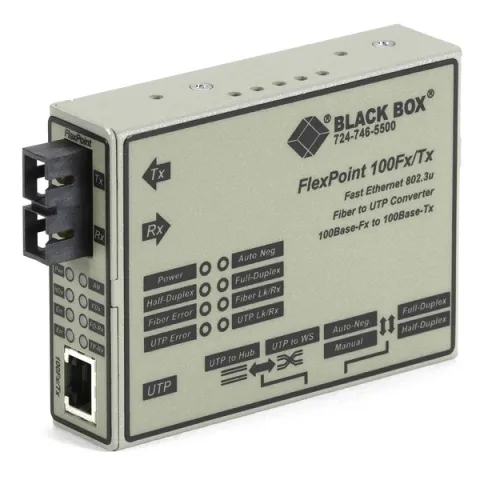 Black Box LMC213A-MMSC-R2 FlexPoint Fast Ethernet (100-Mbps) Media Converter - 100-Mbps Copper to 100-Mbps Multimode Fiber 1310nm 2km