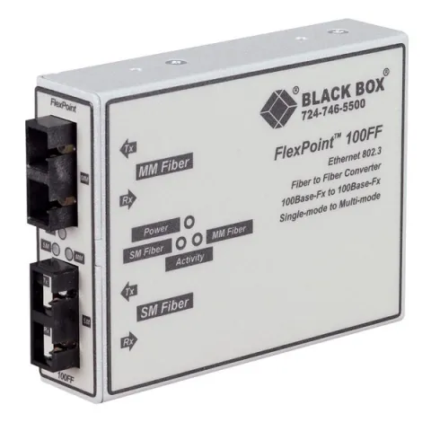 FlexPoint™ Mode Converters from Black Box are versatile and cost-effective standalone converters that you can upgrade to a chassis-based system. They provide the ultimate in flexibility and reliability for your expanding multimedia LAN.
