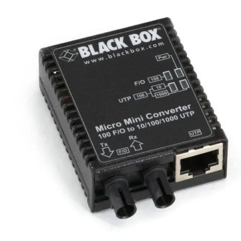 Black Box LMC403A Micro Mini Fast Ethernet (100-Mbps) Media Converter - 10/100/1000-Mbps Copper to 100-Mbps Singlemode Fiber, 1310nm, 30km, ST