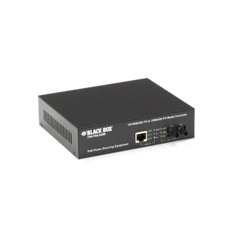Constrained by the distance limits of PoE over copper? Incorporate fiber into your network! This PoE PSE Media Converter not only enables you to connect copper to long-distance fiber data links, it also safely powers compatible devices plugged in on the copper side. Fully compliant with the 802.3af Power over Ethernet (PoE) standard, the converter functions as power source equipment (PSE) to provide -48 VDC power via copper wiring to access points, cameras, and similar devices in areas without nearby power outlets. For equipment protection, it offers overcurrent and undercurrent detection, as well as fault protection input and power monitoring. It also has powered device signature sensing to detect when a 802.3af compliant device is connected downstream. Plus, link-fault passthrough and far-end fault detection features keep you from sending valuable data across invalid links.